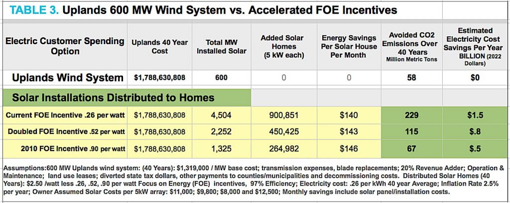 22 See table, Uplands 600 MW Wind System vs. Accelerated FOE Incentive, pdf p. 5 https://bit.ly/Uplands-editorial and associated spreadsheet, https://bit.ly/CompareEndUserAlternative